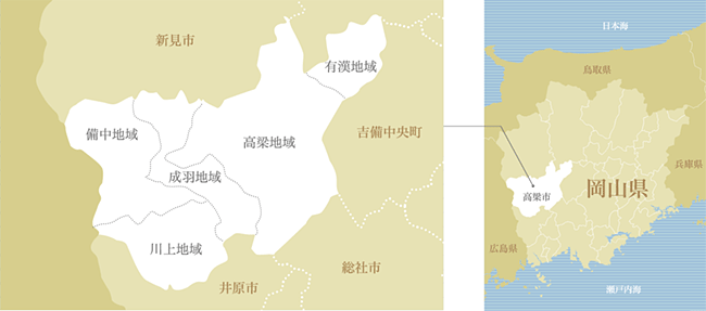 「備中神楽の里」岡山県高梁市は、中国山地の豊かな自然に恵まれた奥深い歴史と文化が息づく山紫水明の里です。春には桜が咲き、夏には花火が夜空を彩り、秋には五穀豊穣を祝う神楽が舞われ、冬には山々が雪化粧する。