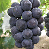 「巨峰」にイギリス産の「カノンホール・マスカット」を交配した銘柄。1粒が13~18グラムある大粒系の葡萄。果肉の締りがよく快い歯ざわりが特徴。種なし種は「ニューピオーネ」。昭和52年に成羽町に紹介され、昼夜の大きい気温差が糖度、着色のよさに結びついた。7月下旬から11月にかけて全国に出荷している。