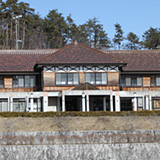 吹屋中学校跡地に、吹屋小学校の外観に似せた宿泊施設。伝建地区の裏手、 静かな環境にある。和洋の客室、大浴場、120 人まで収容できる多目的ホー ルを持つ。厳選した旬の野菜、生鮮な岡山牛など郷土の食材にこだわった和 食には定評がある。最近はB 級グルメにも力を入れている。