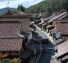 ベンガラ色に染まった見事なまちなみが、かつての繁栄をしのばせます。
