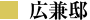 広兼、西江、谷本の3 軒が吹屋弁柄の原料・緑礬の元 締めであった。広兼家二代当主・元治は、享保・文化 年間(1801~1817 年)に小泉銅山の経営と緑礬製造 で蓄財。江戸末期、巨大な石垣や主家、楼門を建造した。 主家の建造は文化7(1810)年といわれる。映画「八 つ墓村」のロケ地となった。高梁市指定重要文化財。